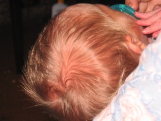 So, it has been and will continue to be a very emotional couple of weeks.  I forget all the hormones that accompany the birth of a child and all of the adjustment that comes with it.  We are still in the honeymoon period of the process.  As we move into the full swing of things, I am sure there will be more stress and adjustment, but for now, I am completely happy and in awe of the entire process.  And for those of you who are wondering…..check out this hair: