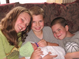 He is adorable and sweet, and has a very peaceful disposition.  I will save you the details of labor….but it was a little scary at the beginning.  We were talking about doing an emergency C-section, in fact, we were planning on it.  We had to wait a little while before we went that way and as we waited, things settled down, and we were able to have a normal labor.  Ryan was 6 pounds 7 ounces, 19 inches long, at delivery.  He is loved and doted on by all of his siblings.  We are so very grateful to have him join our family.
