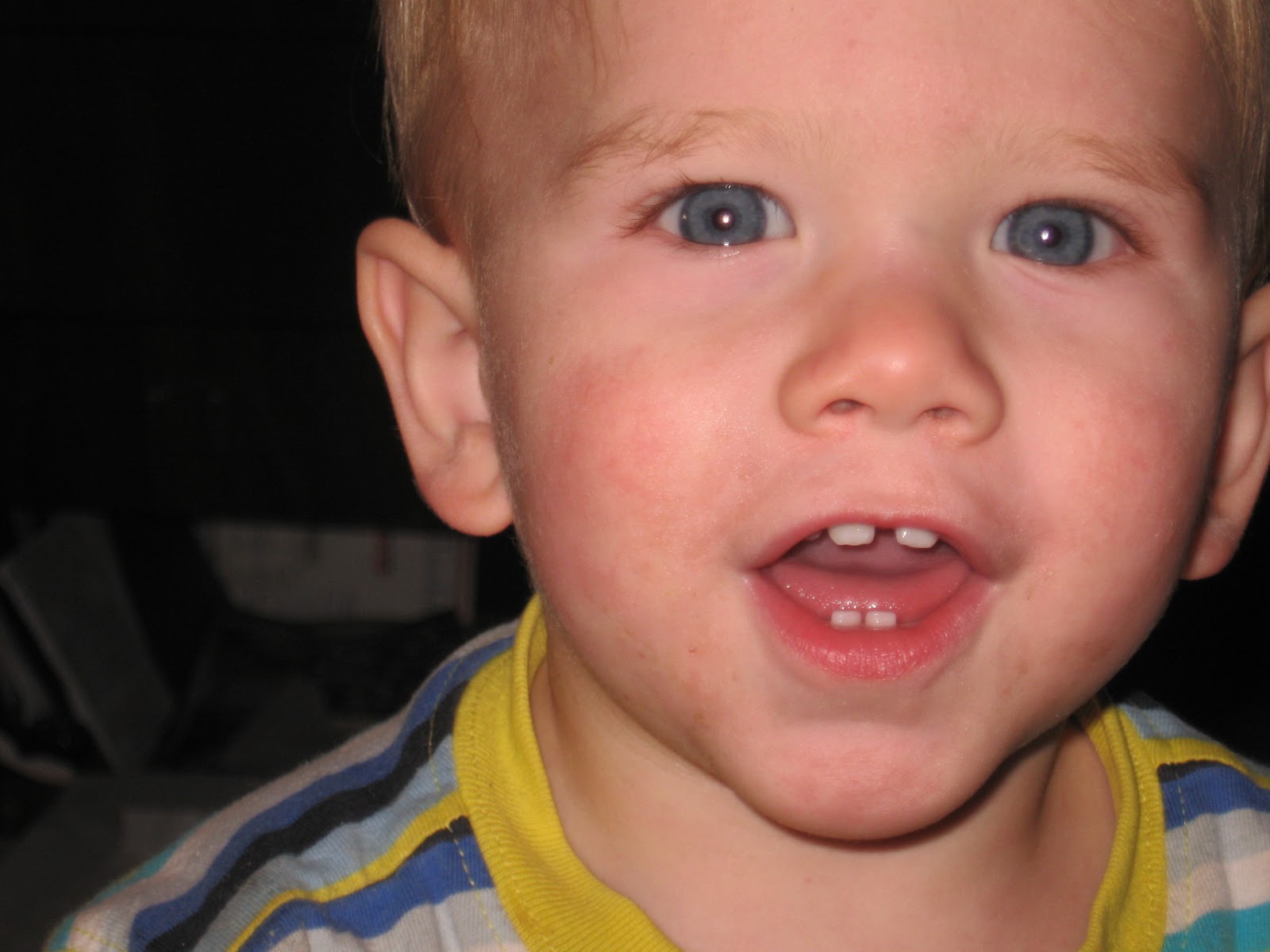 He is starving! He is a picky eater! And OH YA’! He is trying to cut molars! I’ll bet his teeth are hurting and he can’t eat anything I have offered him without it hurting his teeth………He hasn’t liked my applesauce because I left the peels on the apples for the sake of fiber and it is too gritty for his tastes, picky person!