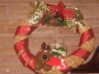#2.  This is my favorite Christmas wreath.  My sister-in-law made the wreath.  The reindeer is from my best high school friend when they were giving them away free with Burger King meals.  I think he is about 24 years old.  And the little angel was made by another friend whom I love.  I think that is why they are special to me.  They come from special people.