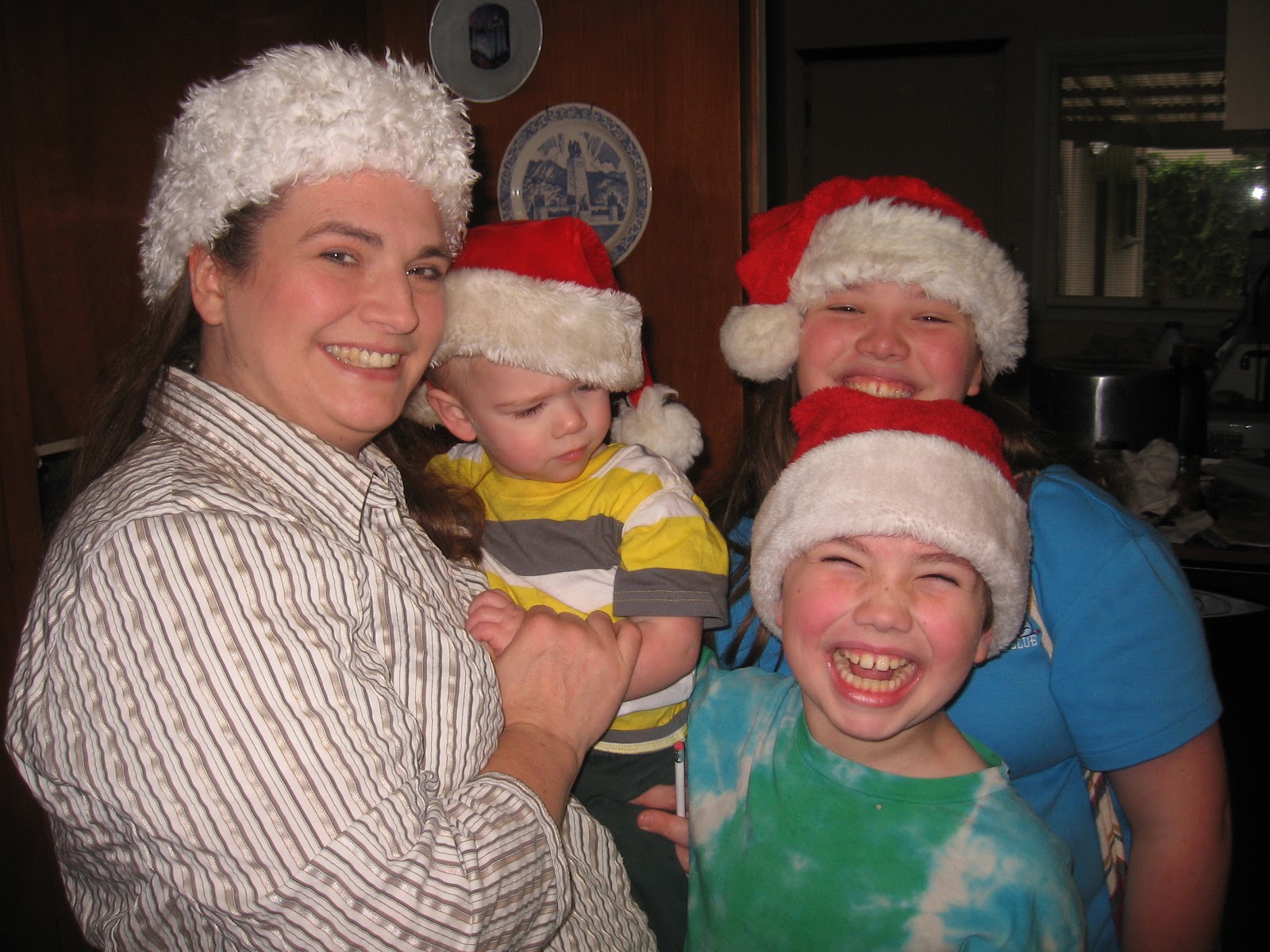 #1 on the list has to be our Santa hats.  When I was a girl, I wanted one so bad!  Well, when we got married and started having children, I decided we all needed Santa hats!  When they go on clearance sale after the holiday, we buy more if we need them.  Everyone has one and we have put their names in them.  It is a big deal every year.  The first thing the kids want is their Santa hat.  Speedy even told me he has a friend who has a camo Santa hat.  How cool is that?  I have seen some of the variations, but my favorites are still the traditional ones.  Yea for Santa hats!