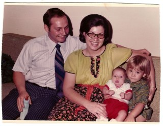 I think I will post the individuals another day. One thing I couldn’t help but notice was my father’s eyes and facial expressions. In the early family photos, he seems so happy and he looks twinkly. As the photos age, his countenance drops and his twinkly-ness goes away, my mom too. The other thing I noticed was how all of our clothing is ‘time-period’ appropriate. Scary. I never realized my mom was a fashion guru 🙂