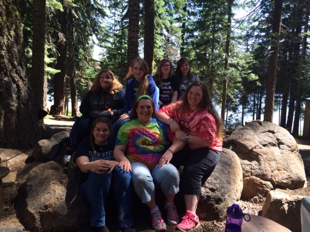 But you can see how beautiful our camp site is! Behind the trees is the lake. It is gorgeous! Love it there!! Girls’ Camp for me has always been in the Redwood trees. As a girl, it was in Oregon on the coast. Here in California, we travel to Oregon 🙂