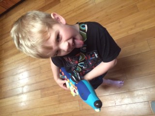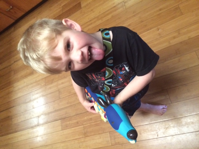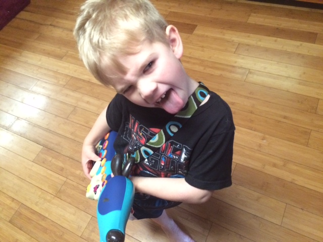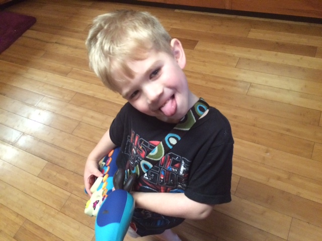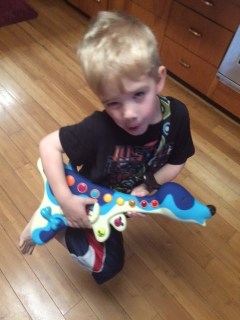As a side note, Spike has been asking for a “Dog Guitar” since we went to playgroup a few weeks ago and one of the kids brought it. He didn’t get a chance to play with it because the one who was playing with it wouldn’t share it…….because she really like it too. So he was pretty excited to have one. Now he plays it every day, sleeps with it at night, and talks about taking it to play group. I don’t know if I will let him do that, but it is what he wants.
