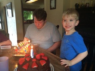 Happy Birthday Spike Spike!! I cannot believe you are four!! The cake with the strawberries? That is the special one…the powdered sugar for that cake? $6……..just for enough to sort of cover one cake! Sheesh!