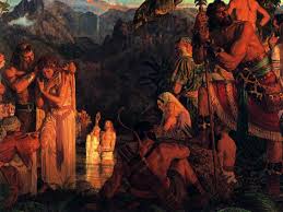 You can totally explain the entire book using these photos. It is a book about Jesus Christ (photo #1). In 1823, a young boy, Joseph Smith (photo #2), was lead to find a record of an ancient people. The book tells the history of a family whose father preached in Jerusalem (photo #3). Because of the message he gave, his life was in danger and the Lord told him to flee Jerusalem. He packed up his family and traveled south. They eventually arrived on the sea shore, where they built a boat and sailed across the Atlantic Ocean, landing in South America (photo #4). The older brothers made bad choices (Lamanites). The younger brothers made righteous choices (Nephites). Because of the disagreements in the family, when the father died, the families split apart beginning the rise of two separate nations, who continually warred with one another. This book, is a record of those people. As the civilization progressed, sometimes they followed their prophets and softened their hearts and fulfilled their responsibilities to God, like being baptized (photo #5). Other times, they did not. Prophets were sent to preach to them and instead of obeying the prophets, they tried to kill them. Samuel the Lamanite (photo #6) was actually sent to the Nephites to convince them to repent before the coming of the Savior Jesus Christ. Just after Samuel preached, and after His resurrection, Jesus Christ appeared to the Nephite people (photo #7). You can read about His visit in 3rd Nephi 12. Four generations after Christ appeared to them, the civilization once again turned to the natural man. They would not listen to the prophets. Mormon was commanded of the Lord to go through the records of his people and compile the most important ones into the book which bears his name, the Book of Mormon. Mormon then handed the record to his son, Moroni (photo #8). Moroni witnessed the destruction of his entire civilization, but before he died, he buried the record and prayed that those records would be preserved and others would know and learn of his people. In 1823, it was Moroni who appeared to Joseph Smith and told him about the record and where it was located.
