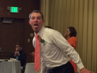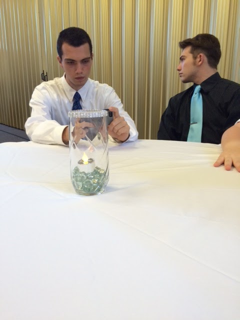 We spent most of the entire day between the wedding and the reception decorating. Someone was there from 10 a.m. until five. We had the family dinner at 6. Dinner was great! Super enjoyable! It was fun to see and meet everyone on both sides of the family. Because it was so crazy, I didn’t even get any photos of the set-up. But here are a few from the evening. First the ones Spike took of our table. Not too bad for a four-year old.