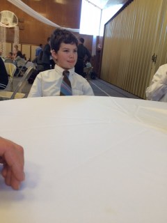Saturday morning, my kiddos and I went off to clean the church building because it was our turn. We returned home from straightening, vacuuming and dusting the chapel to find our High Councilor sitting in the living room with Drew.