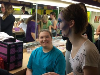 Saturday morning I got up and made cinnamon rolls. Drew took Smiley to his basketball game. I drove Sun and a friend up to the theater for makeup. Drove back home, stopped at the grocery store to pick up a couple of missed items, got home, showered, drove back up to the theater, checked on Sun’s hair and makeup for performance, then found seats for the first show.