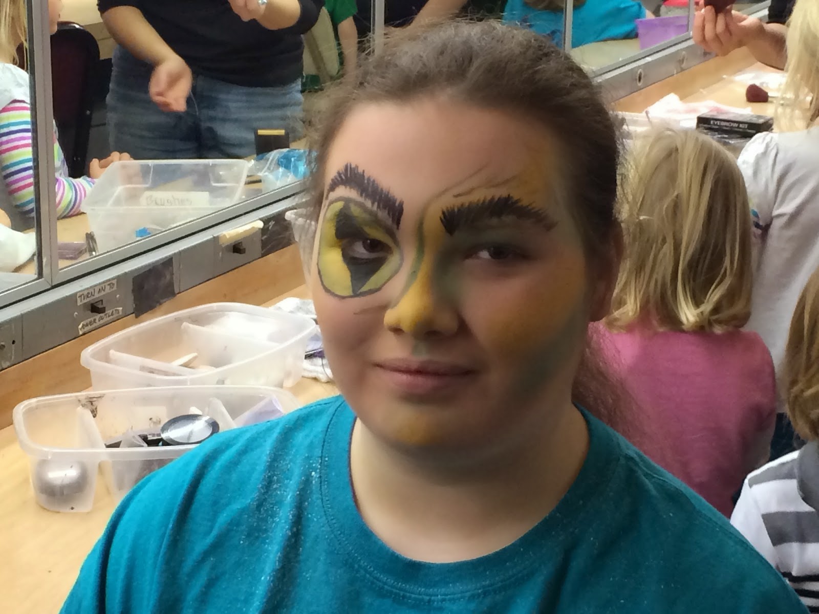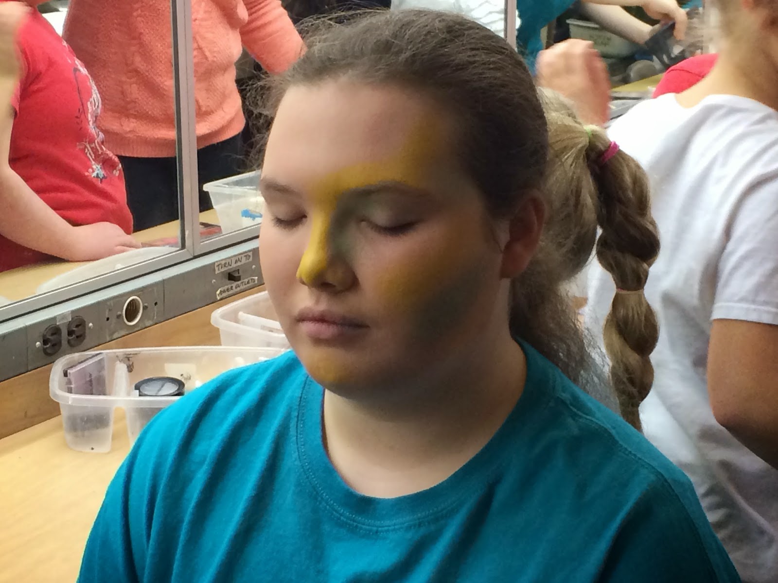 Saturday morning I got up and made cinnamon rolls. Drew took Smiley to his basketball game. I drove Sun and a friend up to the theater for makeup. Drove back home, stopped at the grocery store to pick up a couple of missed items, got home, showered, drove back up to the theater, checked on Sun’s hair and makeup for performance, then found seats for the first show.