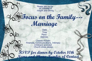Above is the invitation I created. I took out the details but you get the idea. I cannot wait to see how it all turns out! I will be teaching the communications class. Our stake patriarch is teaching the finances class. He is an accountant. And our Bishop is handling the intimacy class. Hopefully this will strengthen all of our families (at least the ones who attend, right?).