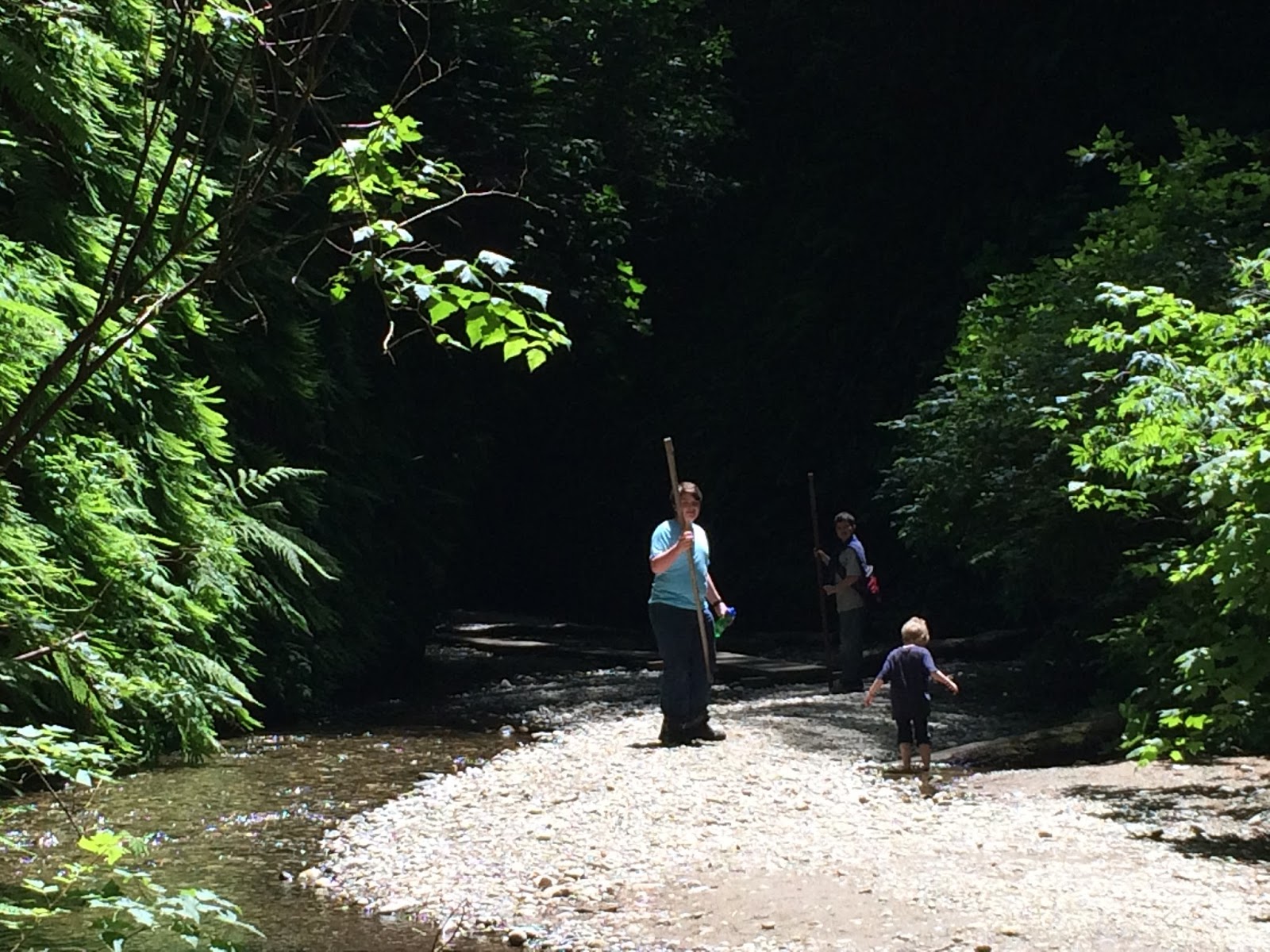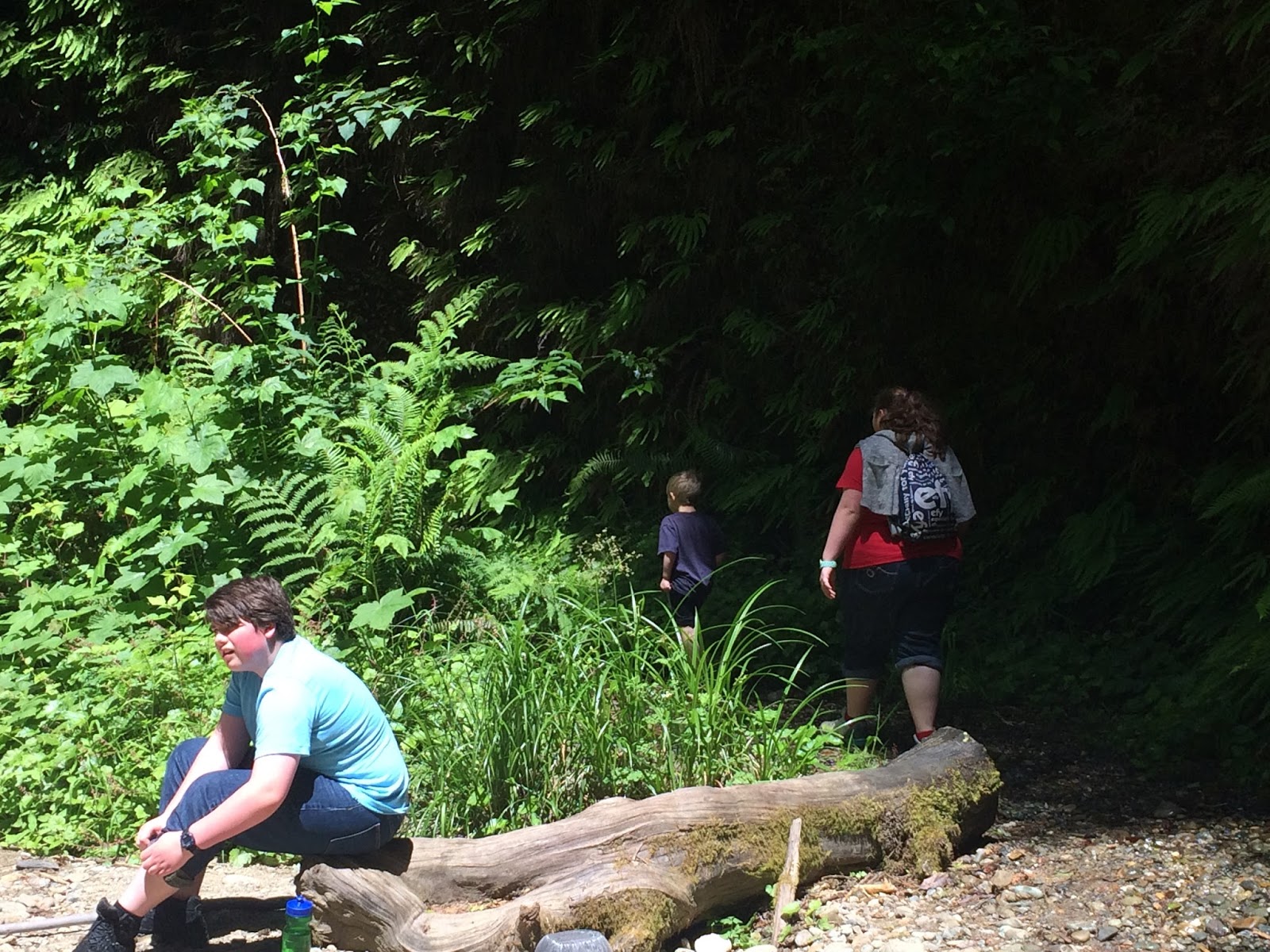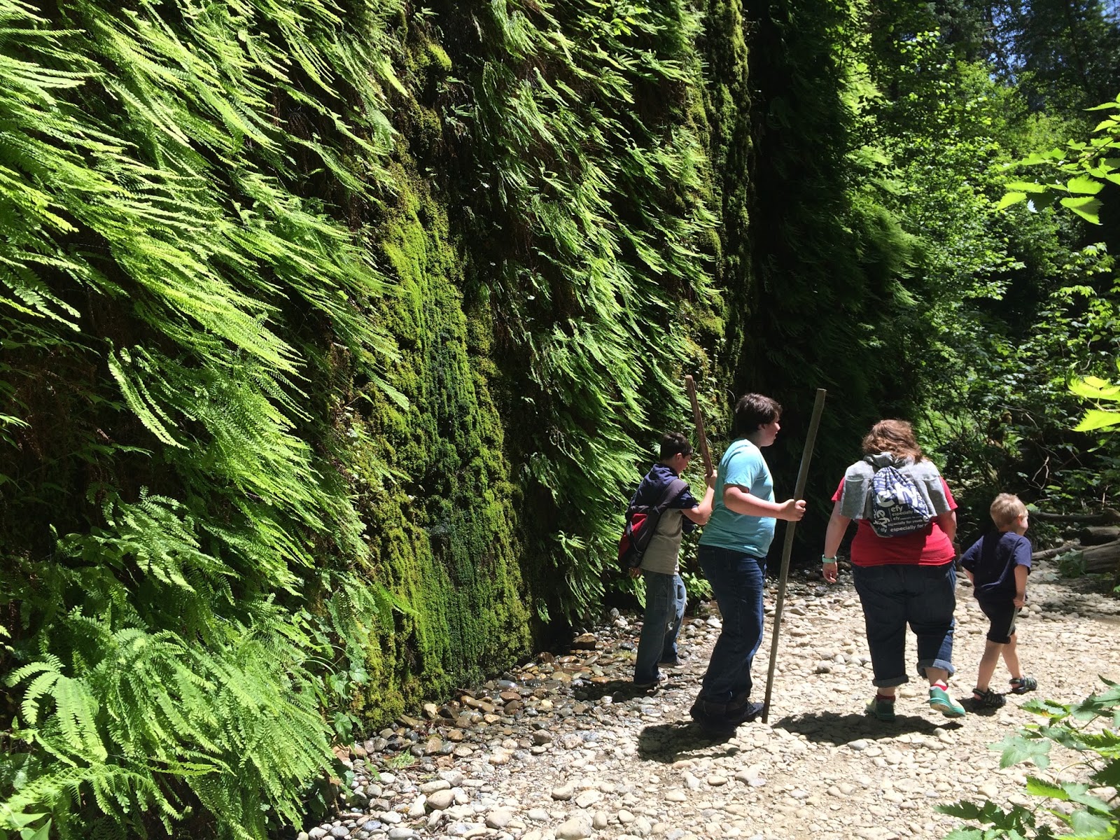 Over Memorial Day, the kids and I went to Fern Canyon. I hadn’t ever been, even though we have lived here for more than 17 years now. The drive is about an hour. We packed up lunches and snacks so we could just spend the entire day out in the sun. It was breath-taking and beautiful! I have never seen anything like it! I guess it is even famous for being where they filmed a part of Jurassic Park—maybe part two or something. Anyway, we got all the way out there, then remembered that we hadn’t brought any cash with us—-they only accepted cash and checks…..bummer. So we had to go back out into the nearest town and get cash, then back into the park—-dirt roads in my mini-van.