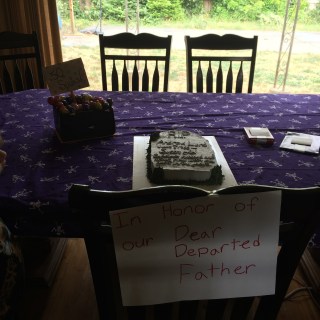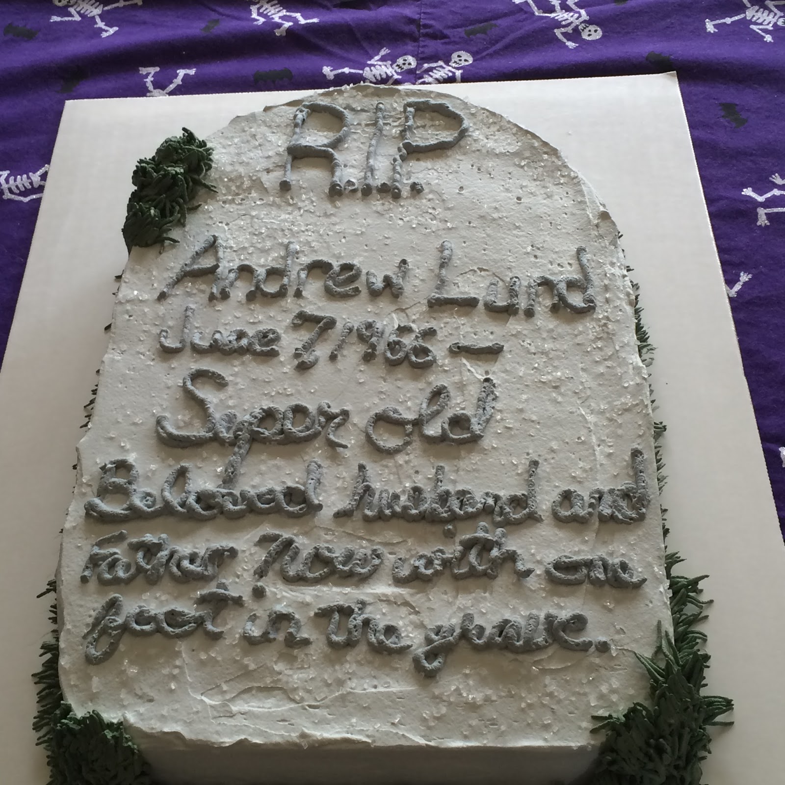 But I wanted to play it all up anyway. So the kids and I planned a wake. Here is his tombstone cake: