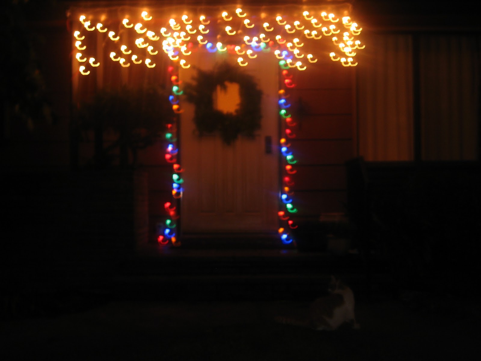 Here are our door decorations…..the only outside lights I have right now 🙂
