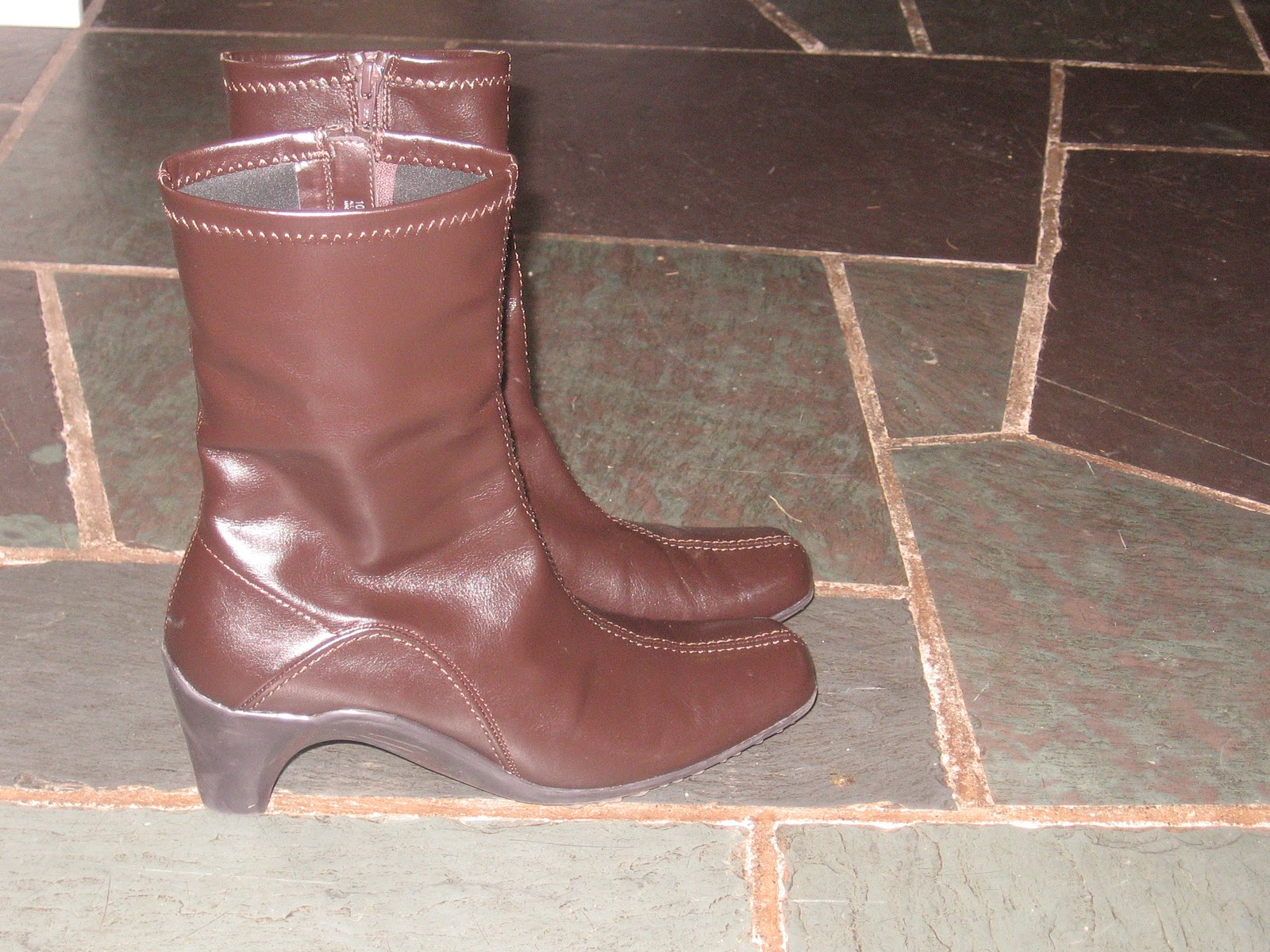 After all the kids got home, I had the thought that I should go and try on the outfit I was thinking of wearing to church. It fit and looked cute, but I didn’t have any shoes that would work. “This outfit says ‘boots’,” I thought. I haven’t ever had a pair of boots. But a store popped into my head and I ran off to go and see what they had. I found a pair that worked perfectly and they were only $30.00!! I bought them. Then called my sweetheart so he could tell me to take them back. I told him what I had purchased and why and that I would take them back, but I really didn’t want to. We came to a compromise. I would stay in the grocery budget for the rest of the year, and I could keep the boots. I had no idea how much I would like boots!! I love them!! Here they are: