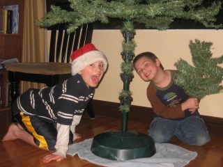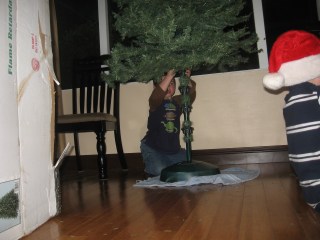 And below are the little boys helping me set up the Christmas tree. Friday after Thanksgiving Spencer was relentless in hounding me to get the Christmas decoration boxes down. I finally did get them down, but still haven’t put them up yet. Drew got up the outside lights and the little guys did the tree…Now Alli will put the lights on today and we’ll begin decorating the entire house!! I love Christmas!!! And with Playlist, I can create my own Christmas music and not pay a cent!! Now we just need some scented candles or pine cones so it smells like Christmas too 🙂 Happy Holidays!!