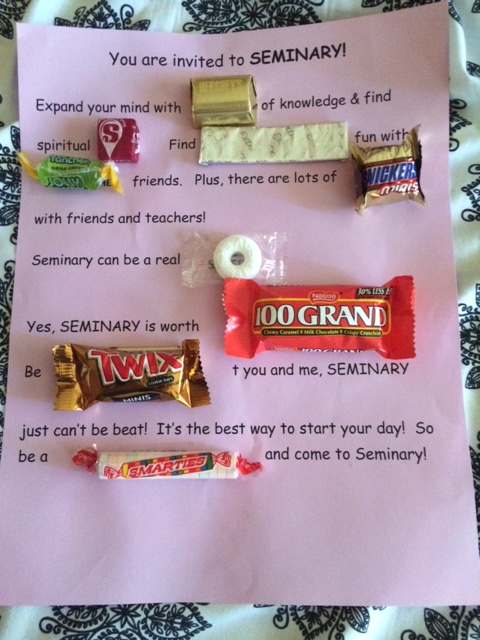 Yes, SEMINARY is worth ‘100 Grand’. Be ‘twix’t you and me, seminary just can’t be beat! It’s the best way to start your day! So be a ‘smartie’ and come to seminary!”